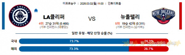 2026-03-02 NBA LA 클리퍼스 vs 뉴올리언스 펠린컨즈 > 농구픽게시판