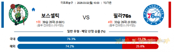 2026-03-02 NBA 보스턴 셀틱스 vs 필라델피아 76ERS