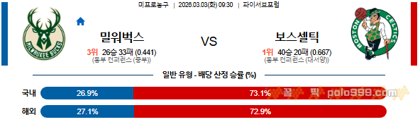 2026-03-03 09:30 NBA 밀워키 벅스 vs 보스턴 셀틱스 페이지 정보 작성자 꿀픽 댓글 0건 조회 160회 작성일 26-03-04 04:21 목록 답변 글쓰기 본문 이전글2026-03-03 11:00 NBA 유타 재즈 vs 덴버 너겟츠 26.03.04 다음글2026-03-03 09:00 NBA 워싱턴 위자드 vs 휴스턴 로켓츠 26.03.04 댓글 0 댓글목록 등록된 댓글이 없습니다.