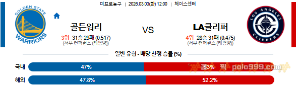 2026-03-03 12:00 NBA 골든스테이트 워리어스 vs LA 클리퍼스 페이지 정보 작성자 꿀픽 작성일 26-03-04 06:47 조회 105 댓글 0 본문 이전글 2026-03-04 13:00 NBA 새크라멘토 킹스 vs 피닉스 선즈 다음글 2026-03-04 12:30 NBA LA 레이커스 vs 뉴올리언스 펠린컨즈 댓글목록 0 등록된 댓글이 없습니다.