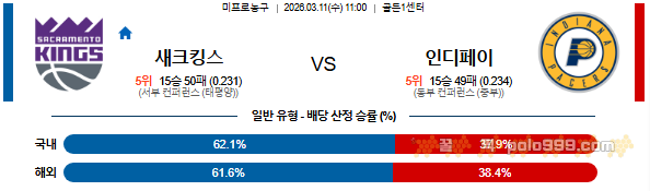 2026-03-11 11:00 NBA 새크라멘토 킹스 vs 인디애나 페이서스 페이지 정보 작성자 꿀픽 댓글 0건 조회 142회 작성일 26-03-11 01:10 목록 답변 글쓰기 본문 다음글2026-03-11 11:00 NBA 포틀랜드 트레일블레이저 vs 샬럿 호네츠 26.03.11 댓글 0 댓글목록 등록된 댓글이 없습니다.