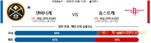 2026-03-12 11:00 NBA 덴버 너겟츠 vs 휴스턴 로켓츠 페이지 정보 작성자 꿀픽 댓글 0건 조회 108회 작성일 26-03-12 08:02 목록 답변 글쓰기 본문 이전글2026-03-12 11:00 NBA 새크라멘토 킹스 vs 샬럿 호네츠 26.03.12 다음글2026-03-12 19:00 KBL 서울 SK vs 원주 DB 26.03.12 댓글 0 댓글목록 등록된 댓글이 없습니다.