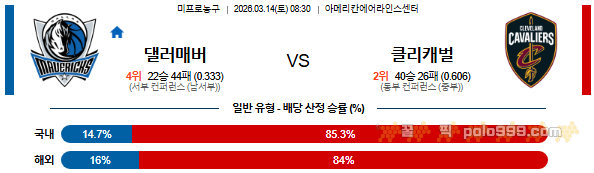 2026-03-14 08:30 NBA 댈러스 매버릭스 vs 클리블랜드 캐벌리어스 페이지 정보 작성자 꿀픽 댓글 0건 조회 217회 작성일 26-03-15 00:03 목록 답변 글쓰기 본문 이전글2026-03-15 09:30 NBA LA 레이커스 vs 덴버 너겟츠 26.03.15 다음글2026-03-15 09:00 NBA 마이애미 히트 vs 올랜도 매직 26.03.14 댓글 0 댓글목록 등록된 댓글이 없습니다.