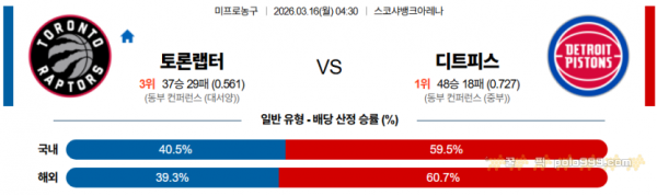 2026-03-16 04:30 NBA 토론토 랩터스 디트로이트 피스톤스