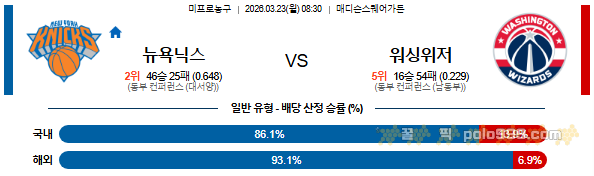 2026-03-23 08:30 NBA 뉴욕 닉스 vs 워싱턴 위자드 페이지 정보 작성자 꿀픽 댓글 0건 조회 162회 작성일 26-03-22 18:42 목록 답변 글쓰기 본문 다음글2026-03-23 19:00 KBL 서울 삼성 vs 울산 현대모비스 26.03.22 댓글 0 댓글목록 등록된 댓글이 없습니다.