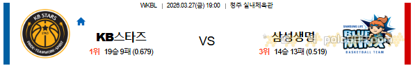 2026-03-27 19:00 WKBL KB스타즈 vs 삼성생명 페이지 정보 작성자 꿀픽 댓글 0건 조회 242회 작성일 26-03-26 17:31 목록 답변 글쓰기 본문 이전글2026-03-27 08:00 NBA 샬럿 호네츠 vs 뉴욕 닉스 26.03.26 다음글2026-03-27 08:00 NBA 올랜도 매직 vs 새크라멘토 킹스 26.03.26 댓글 0 댓글목록 등록된 댓글이 없습니다.