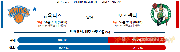 2026-04-10 08:30 NBA 뉴욕 닉스 vs 보스턴 셀틱스 페이지 정보 작성자 꿀픽 작성일 26-04-09 23:13 조회 402 댓글 0 본문 이전글 2026-04-10 10:00 NBA 토론토 랩터스 vs 마이애미 히트 다음글 2026-04-10 09:00 NBA 휴스턴 로켓츠 vs 필라델피아 76ERS 댓글목록 0 등록된 댓글이 없습니다.