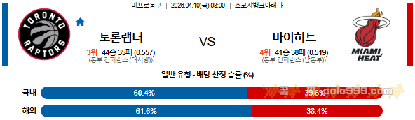 2026-04-10 10:00 NBA 토론토 랩터스 vs 마이애미 히트 페이지 정보 작성자 꿀픽 작성일 26-04-09 23:13 조회 391 댓글 0 본문 이전글 2026-04-10 08:30 NBA 브루클린 네츠 vs 인디애나 페이서스 다음글 2026-04-10 08:30 NBA 뉴욕 닉스 vs 보스턴 셀틱스 댓글목록 0 등록된 댓글이 없습니다.