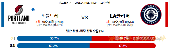 2026-04-11 11:00 NBA 포틀랜드 트레일블레이저 vs LA 클리퍼스 페이지 정보 작성자 꿀픽 댓글 0건 조회 344회 작성일 26-04-10 20:45 목록 답변 글쓰기 본문 이전글2026-04-11 08:00 NBA 샬럿 호네츠 vs 디트로이트 피스톤스 26.04.10 다음글2026-04-10 08:30 NBA 브루클린 네츠 vs 인디애나 페이서스 26.04.10 댓글 0 댓글목록 등록된 댓글이 없습니다.