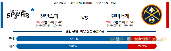 2026-04-13 09:30 NBA 샌안토니오 스퍼스 vs 덴버 너겟츠 페이지 정보 작성자 꿀픽 댓글 0건 조회 184회 작성일 26-04-13 04:49 목록 답변 글쓰기 게시판 리스트 옵션 검색 본문 이전글2026-04-13 09:30 NBA 댈러스 매버릭스 vs 시카고 불스 26.04.13 다음글2026-04-13 07:00 NBA 필라델피아 76ERS vs 밀워키 벅스 26.04.13 댓글 0 댓글목록 등록된 댓글이 없습니다.