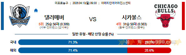 2026-04-13 09:30 NBA 댈러스 매버릭스 vs 시카고 불스 페이지 정보 작성자 꿀픽 댓글 0건 조회 155회 작성일 26-04-13 06:30 목록 답변 글쓰기 게시판 리스트 옵션 검색 본문 이전글2026-04-13 09:30 NBA LA 레이커스 vs 유타 재즈 26.04.13 다음글2026-04-13 09:30 NBA 샌안토니오 스퍼스 vs 덴버 너겟츠 26.04.13 댓글 0 댓글목록 등록된 댓글이 없습니다.
