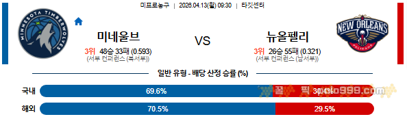 2026-04-13 09:30 NBA 미네소타 울브스 vs 뉴올리언스 펠린컨즈 페이지 정보 작성자 꿀픽 댓글 0건 조회 160회 작성일 26-04-13 06:32 목록 답변 글쓰기 게시판 리스트 옵션 검색 본문 이전글2026-04-13 09:30 NBA LA 클리퍼스 vs 골든스테이트 워리어스 26.04.13 다음글2026-04-13 09:30 NBA LA 레이커스 vs 유타 재즈 26.04.13 댓글 0 댓글목록 등록된 댓글이 없습니다.