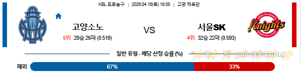 2026-04-16 19:00 KBL 고양 소노 vs 서울 SK 페이지 정보 작성자 꿀픽 댓글 0건 조회 223회 작성일 26-04-15 19:37 목록 답변 글쓰기 본문 이전글2026-04-16 11:00 NBA LA 클리퍼스 vs 골든스테이트 워리어스 26.04.15 다음글2026-04-16 08:30 NBA 필라델피아 76ERS vs 올랜도 매직 26.04.15 댓글 0 댓글목록 등록된 댓글이 없습니다.
