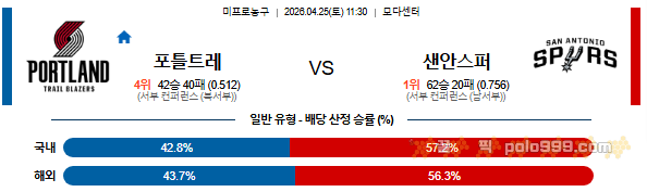 2026-04-25 11:30 NBA 포틀랜드 트레일블레이저 vs 샌안토니오 스퍼스 페이지 정보 작성자 꿀픽 댓글 0건 조회 163회 작성일 26-04-24 21:52 목록 답변 글쓰기 본문 다음글2026-04-25 09:00 NBA 휴스턴 로켓츠 vs LA 레이커스 26.04.24 댓글 0 댓글목록 등록된 댓글이 없습니다.