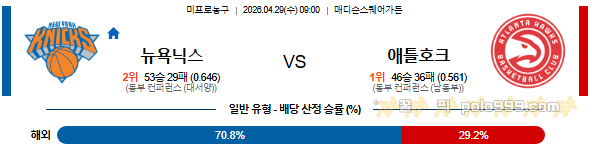 2026-04-29 09:00 NBA 뉴욕 닉스 vs 애틀랜타 호크스 페이지 정보 작성자 꿀픽 댓글 0건 조회 140회 작성일 26-04-28 19:46 목록 답변 글쓰기 본문 이전글2026-04-29 10:30 NBA 샌안토니오 스퍼스 vs 포틀랜드 트레일블레이저 26.04.28 다음글2026-04-29 08:00 NBA 보스턴 셀틱스 vs 필라델피아 76ERS 26.04.28 댓글 0 댓글목록 등록된 댓글이 없습니다.