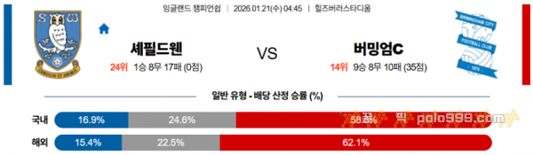 2026-01-21 04:45 잉글랜드 챔피언쉽 셰필드 웬즈데이 버밍엄시티
