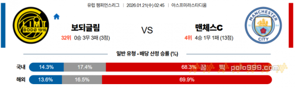 2026-01-21 02:45 UEFA 챔피언스리그 FK 보되/글림트 맨체스터 시티