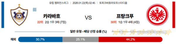2026-01-22 02:45 UEFA 챔피언스리그 카라바흐 프랑크푸르트