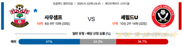 2026-01-22 04:45 잉글랜드 챔피언쉽 사우샘프턴 셰필드 유나이티드