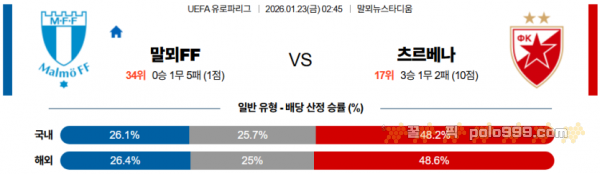 2026-01-23 02:45 UEFA 유로파리그 말뫼 FF 츠르베나 즈베즈다