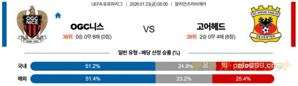 2026-01-23 05:00 UEFA 유로파리그 OGC 니스 고 어헤드 이글스