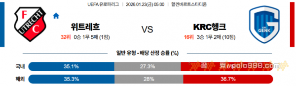 2026-01-23 05:00 UEFA 유로파리그 FC 위트레흐트 헹크