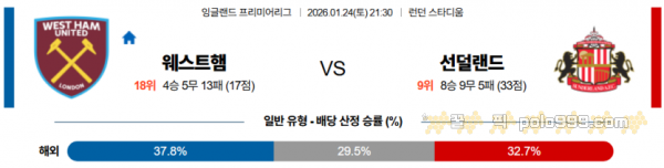 2026-01-24 21:30 프리미어리그 웨스트햄 선덜랜드 AFC
