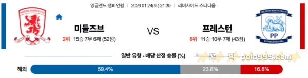 2026-01-24 21:30 잉글랜드 챔피언쉽 미들즈브러 FC 프레스턴 노스 엔드