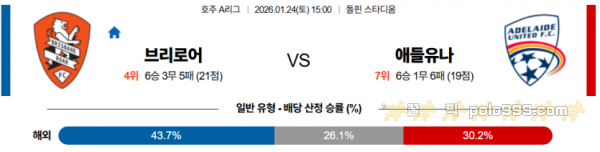 2026-01-24 15:00 호주 A리그 브리즈번 로어 FC 애들레이드 유나이티드 FC