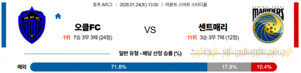 2026-01-24 13:00 호주 A리그 오클랜드 FC 센트럴 코스트 마리너스 FC