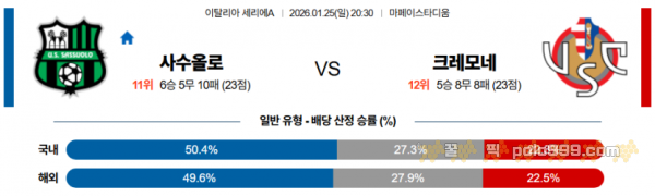 2026-01-25 20:30 세리에 A 사수올로 크레모네
