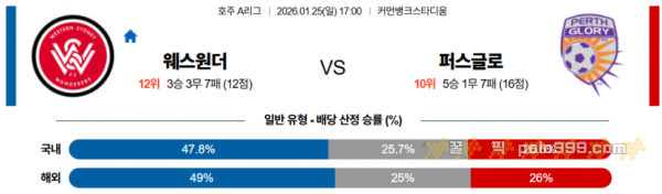2026-01-25 17:00 호주 A리그 웨스턴 시드니 원더러스 FC 퍼스 글로리 FC