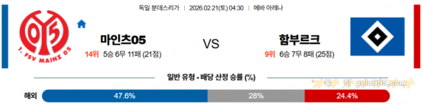 2026-02-21 04:30 분데스리가 마인츠 함부르크
