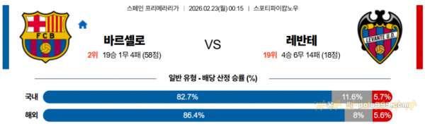 2026-02-23 00:15 라리가 FC 바르셀로나 레반테 > 축구픽게시판
