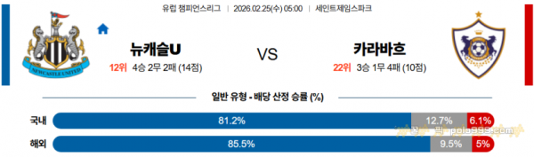 2026-02-25 05:00 UEFA 챔피언스리그 뉴캐슬 제츠 FC 카라바흐 > 축구픽게시판