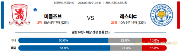 2026-02-25 04:45 잉글랜드 챔피언쉽 미들즈브러 FC 레스터 시티