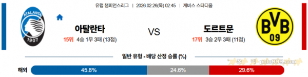 2026-02-26 02:45 UEFA 챔피언스리그 아탈란타 BC 보루시아 도르트문트
