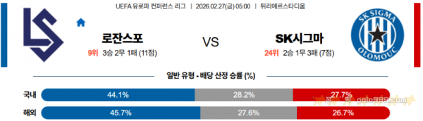 2026-02-27 05:00 UEFA 컨퍼런스리그 로잔 SK 시그마 올로모우츠