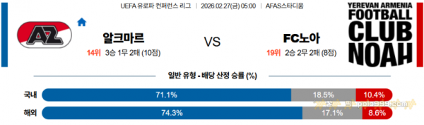 2026-02-27 05:00 UEFA 컨퍼런스리그 AZ 알크마르 FC 노아 > 축구픽게시판