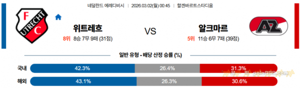 2026-03-02 00:45 에레디비지 FC 위트레흐트 AZ 알크마르