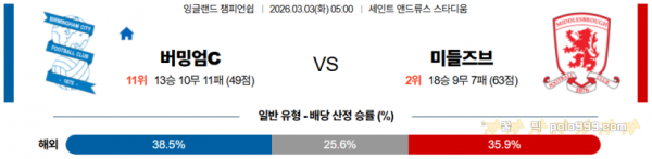 2026-03-03 05:00 잉글랜드 챔피언쉽 버밍엄시티 미들즈브러 FC