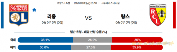 2026-03-06 05:10 프랑스 FA컵 올랭피크 리옹 RC 랑스