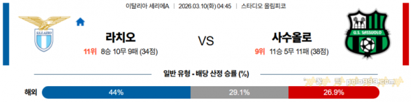 2026-03-10 04:45 세리에 A SS 라치오 사수올로
