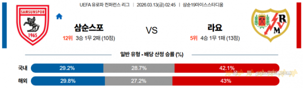 2026-03-13 02:45 UEFA 컨퍼런스리그 삼순스포르 라요 바예카노