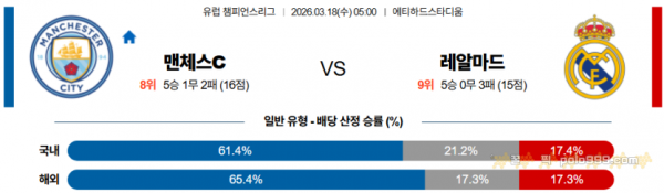 2026-03-18 05:00 UEFA 챔피언스리그 맨체스터 시티 레알 마드리드