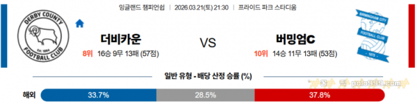 2026-03-21 21:30 잉글랜드 챔피언쉽 더비 카운티 버밍엄시티