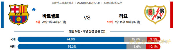 2026-03-22 22:00 라리가 FC 바르셀로나 라요 바예카노
