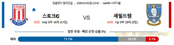 2026-04-03 잉글랜드 챔피언쉽 스토크 시티 셰필드 웬즈데이