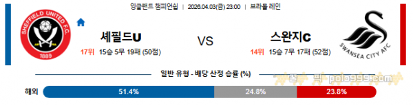 2026-04-03 23:00 잉글랜드 챔피언쉽 셰필드 유나이티드 vs 스완지 시티