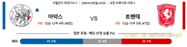 2026-04-05 에레디비지 AFC 아약스 트벤테 > 축구픽게시판